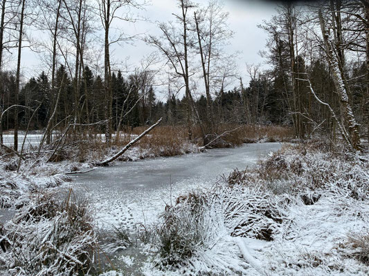 ... Perfekt zum Start im neuen Jahr haben endlich auch einige Schneeflocke den Weg zu uns gefunden! Die Möser sind eingefroren, Tierspuren können entdeckt werden, für einen Schneemann reicht es aber noch nicht ganz ;) ...